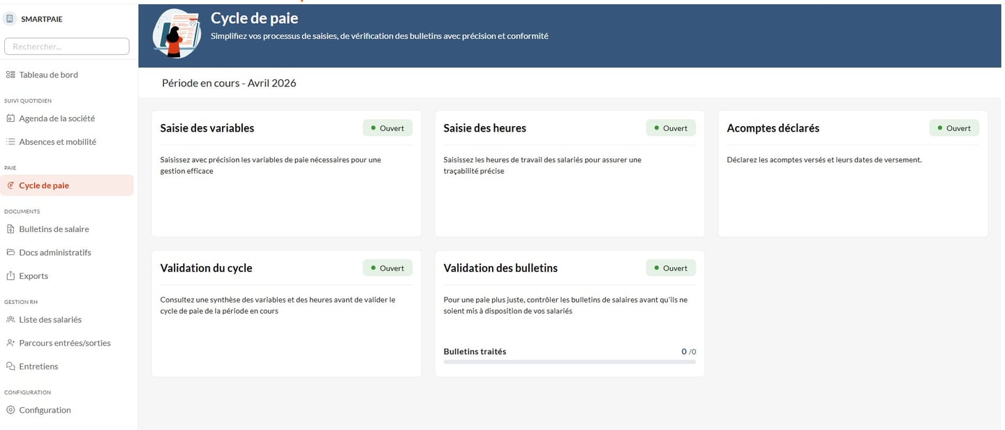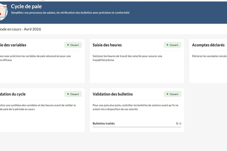 Des alertes paramétrables vous permettent d’anticiper chaque étape et de sécuriser vos décisions. Toutes les informations sont regroupées sur un espace unique, partagé avec votre gestionnaire de paie, pour une gestion fiable, structurée et pleinement conforme.