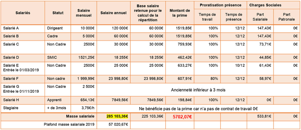 (1) Pour le dirigeant, la prime est plafonnée au revenu le plus élevé dans l’entreprise