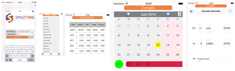 SMARTPAIE propose à ses clients de donner des accès personnel et sécurisé aux salariés, leur permettant ainsi d’établir des demandes de congés en ligne. Sur PC ou application SMARTPHONE, les salariés peuvent en plus visualiser leurs bulletins de salaire et consulter le solde des repos acquis.