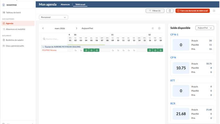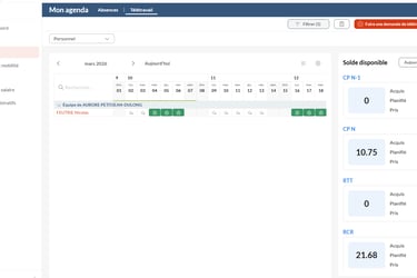 Les salariés effectuent leurs demandes depuis le web ou l’application mobile, consultent leurs compteurs en temps réel et suivent le statut de leurs validations. Les managers visualisent les plannings d’équipe, approuvent les demandes et anticipent l’organisation du travail.