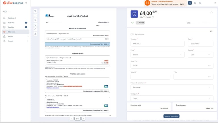 Les collaborateurs saisissent leurs dépenses simplement via une interface web ou mobile, avec transmission des justificatifs en temps réel. Les circuits de validation sont automatisés, garantissant un traitement rapide et un meilleur contrôle des dépenses.